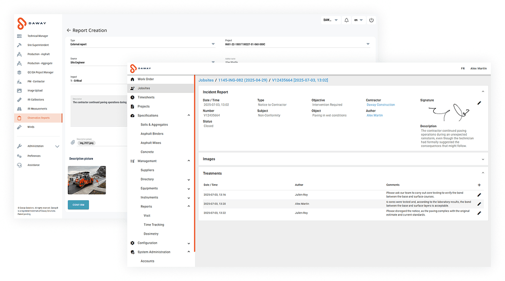 A single platform for complete and collaborative worksite management. Whether you’re in quality control or quality assurance mode, centralize all your project data in real time:
